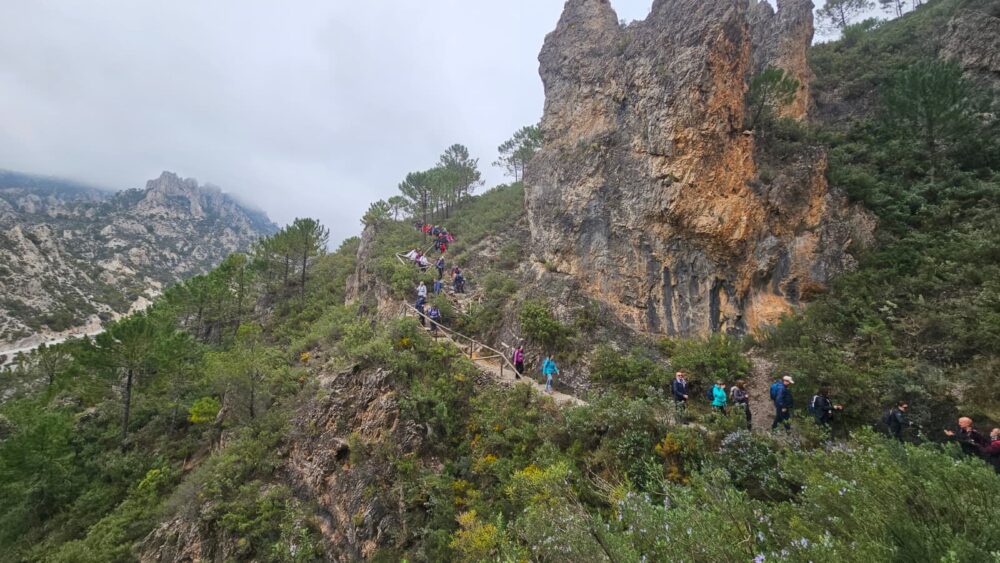 Vícar, 23 de marzo de 2026: El programa ‘Deporte y Naturaleza’ va poco a poco completando las citas senderistas de esta temporada y lo ha hecho este domingo recuperando la ruta al Rio Verde de Otívar, en la provincia de Granada, que tuvo que suspenderse el mes de febrero pasado por la mala climatología. La de ayer fue una ruta de unos quince kilómetros, y 750 metros de desnivel, para descubrir uno de los parajes fluviales más espectaculares de Granada, el sendero de Rio Verde. Los excursionistas iniciaron la ruta desde las cercanías de Otívar, descendiendo hacia un cañón tallado por el río entre paredes verticales y vegetación exuberante. A lo largo del recorrido, se encontraron con pozas de aguas cristalinas, pequeñas cascadas y rincones ideales para descansar.
