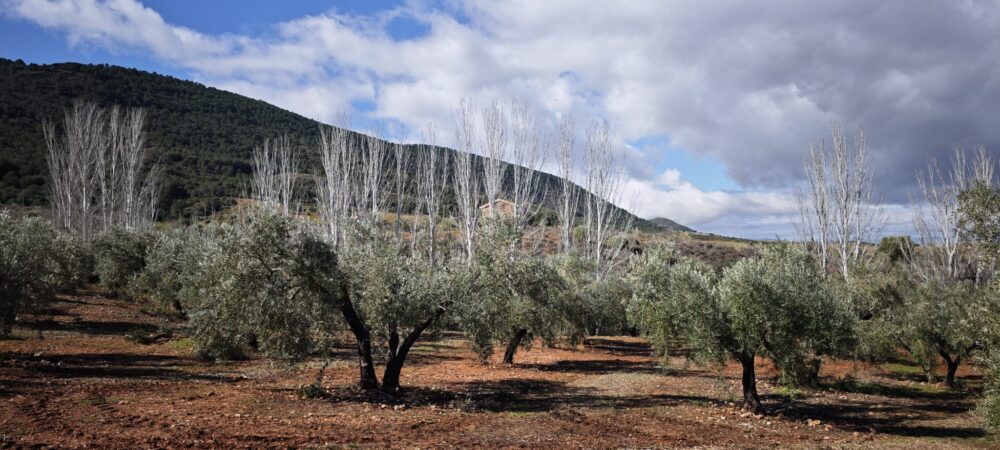 Desde ahí abandonaron durante unos minutos el sendero circular para desviarse a contemplar la caprichosa formación rocosa de Piedra Ventana, un gran arco de piedra labrado por la erosión que merece la pena visitar y en el que fotografiarse antes de retomar el sendero e iniciar un descenso que les condujo de nuevo a los extensos campos de cultivos de la vega de Dílar, con la imagen al fondo de la Ermita Nueva indicando el final del camino entre carriles arcillosos.