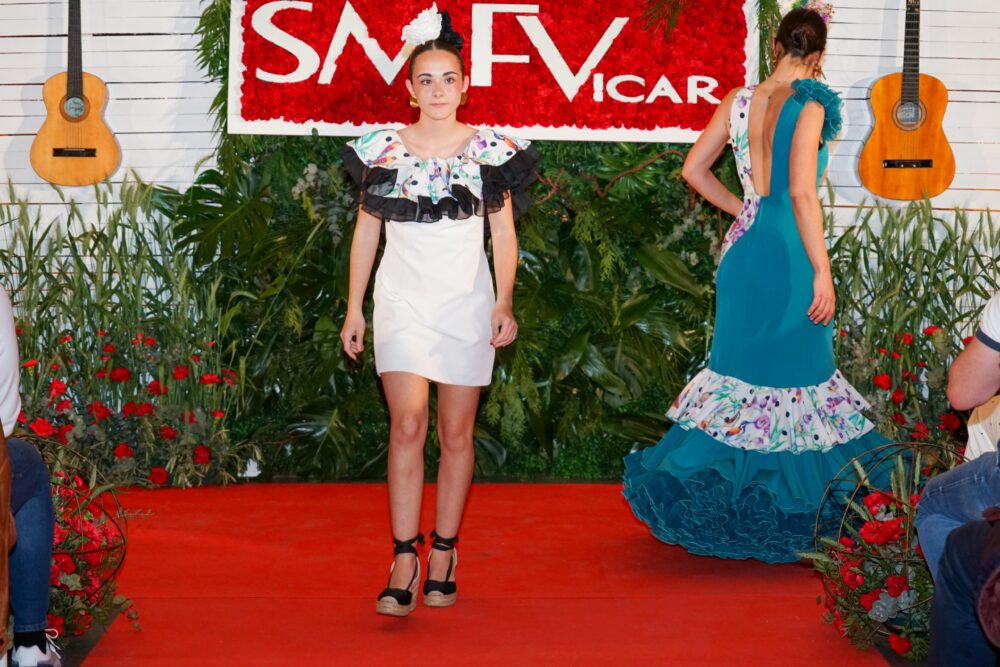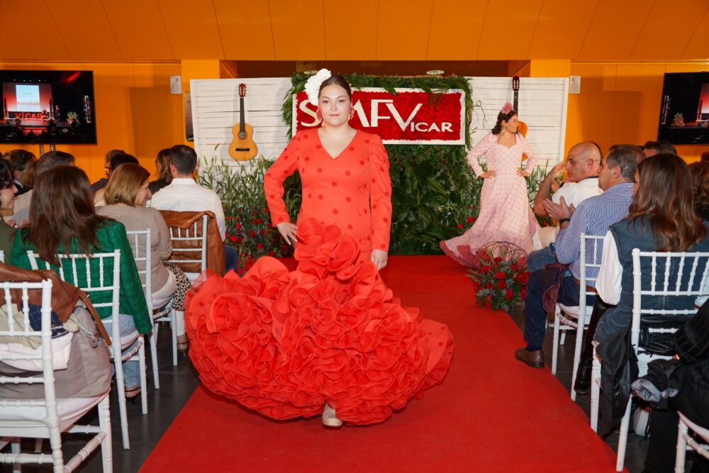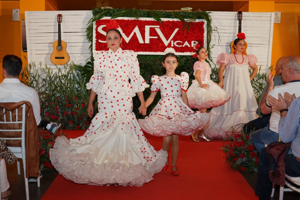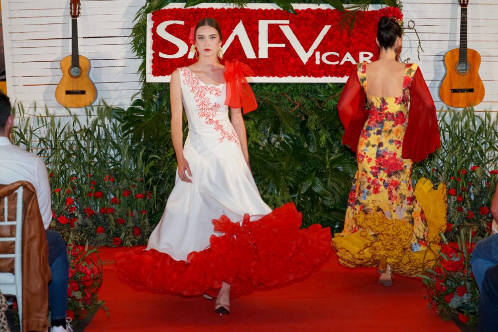 Virginia Martín, Dámaris Viñolo, Eli Martín, Congo Atelier (José Contreras y Lola Mendoza), Manuela Martín y Marisa Pérez son los diseñadores que firmaron las seis colecciones presentadas durante esta segunda edición, además del pase de los talleres de costura de Dámaris Viñolo, Eli Martín y Virginia Martín. Entre todos los modelos se encontraron propuestas para todos los gustos, géneros y edades con infinitud de texturas, colores y patrones. Asimismo, otro de los elementos que caracterizan al Salón de la Moda Flamenca de Vícar es el del baile, de la mano de las actuaciones de las academias de Maribel Carreño, María Carricondo y Cristina Muelas. Todas ellas, en una fusión de esencia y tradición contribuyeron a elevar la noche un escalón más.