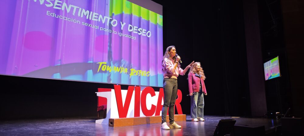 Vícar, 19 de marzo de 2026: Cerca de 300 alumnos y alumnas de Vícar han participado esta mañana en el taller ‘Consentimiento y Deseo’ que organizaba el Centro de Información de la Mujer de Vícar y que ha sido impartido por las influencers Towanda Rebels. Un evento dirigido a estudiantes de segundo curso de la ESO de los cinco centros educativos donde se imparte este ciclo, y en el que se han abordado las relaciones interpersonales enfocadas desde el respeto y el consentimiento rechazando cualquier violencia y estigma. Esta actividad ha sido impulsada por las áreas de Igualdad y Educación del Ayuntamiento de Vícar.