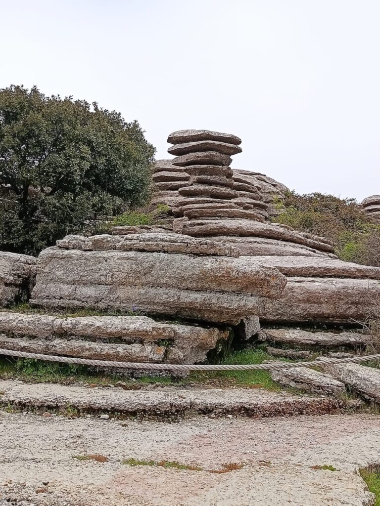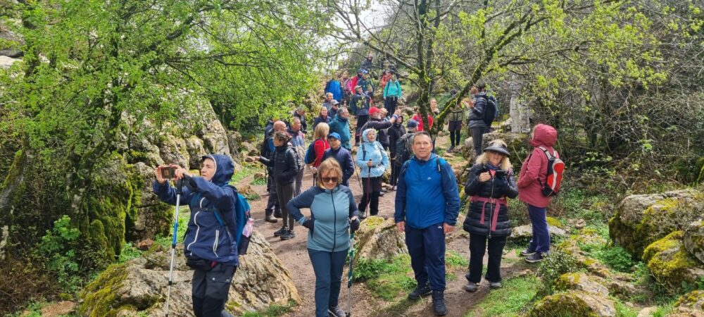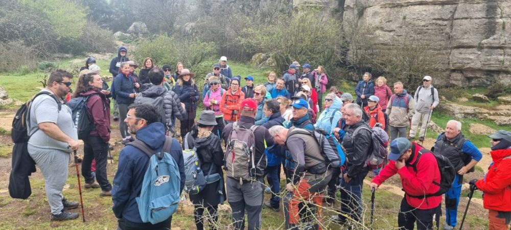 Los senderistas caminaron entre crestas, dolinas y agujas que parecen esculpidas por la naturaleza con paciencia milenaria y a medida que avanzaban tuvieron la oportunidad de contemplar impresionantes vistas panorámicas de la campiña con la ciudad de Antequera al fondo. El camino descendía después suavemente, adentrándose en zonas más abiertas y menos abruptas, hasta conectar con las sendas que llevaban directamente a la población de Antequera.