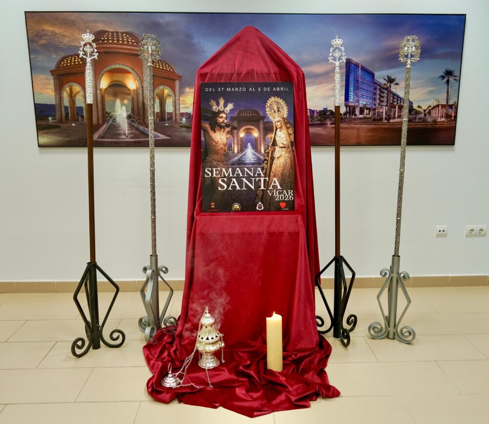 Vícar, 3 de marzo de 2026: El Alcalde de Vícar, Antonio Bonilla, ha dado a conocer este martes el cartel anunciador de Semana Santa así como la programación de este año. El anuncio ha tenido lugar en un íntimo acto donde también han participado los concejales Cristian Díaz y Francisca Hernández, así como representantes de las dos hermandades con las que cuenta el municipio: la Hermandad del Santísimo Cristo de la Paz y Nuestra Señora de los Dolores (La Gangosa) y Hermandad del Santísimo Cristo de la Esperanza y la Virgen de la Pasión (Puebla de Vícar).